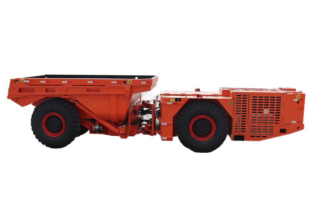 地下運(yùn)礦卡車結(jié)構(gòu)緊湊,車身結(jié)構(gòu)堅(jiān)固耐用,能夠在井下惡劣環(huán)境下提供安全高效、高速的長距離礦山運(yùn)輸,卡車采用中央狡接結(jié)構(gòu),轉(zhuǎn)彎半徑小,機(jī)動(dòng)靈活,采用全封閉濕式多盤彈簧制動(dòng),保證設(shè) 備坡道行駛的安全性和可靠性,發(fā)動(dòng)機(jī)功率強(qiáng)大爬坡性能好。